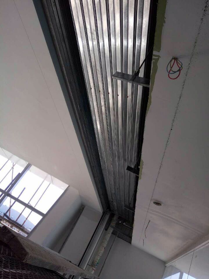天通泰中以文化數(shù)碼科技園由于地上一層是門連窗,防火卷簾門無法安裝,故我公司推出一種方案:在門連窗處立50*100*3.0方管,方管的下方和地面用ø10*10膨脹栓固定,上面和水泥梁用ø10*10膨脹栓固定,達到穩(wěn)固效果,這樣卷簾門才能在運行時不顫動。